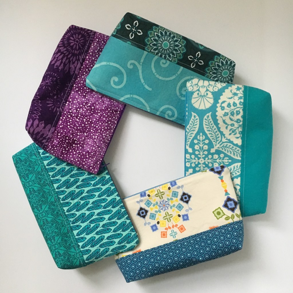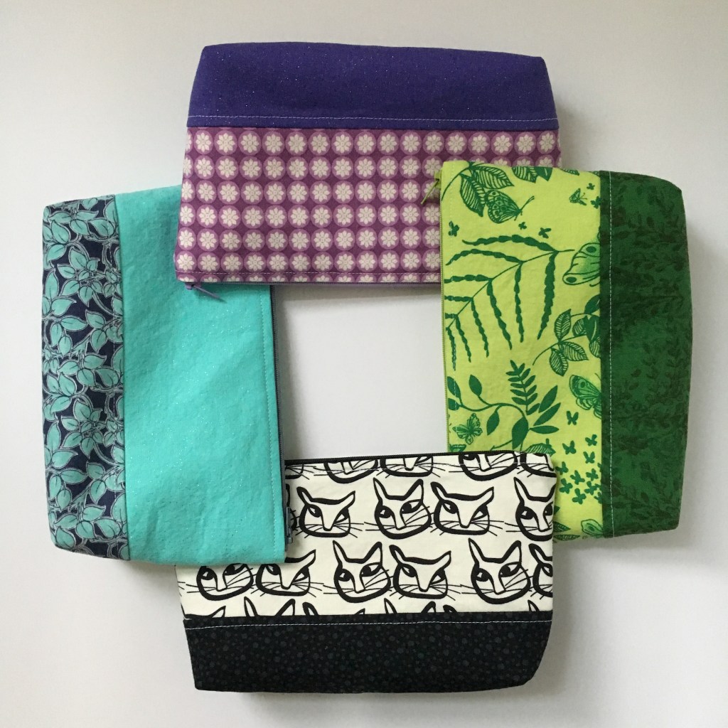 In fact, I’ve already done more bag making! After finishing the totes, I had a little bit more time dedicated for sewing, so I whipped up a zipper pouch using a pattern by Sotak Patterns. I was amazed at how easy it was! So, I decided to make 10 more. Batch sewist, indeed! I had my young daughter help pick out fabrics and choose who got each pouch for Christmas. It was a fun project and, again, I see myself making more bags!