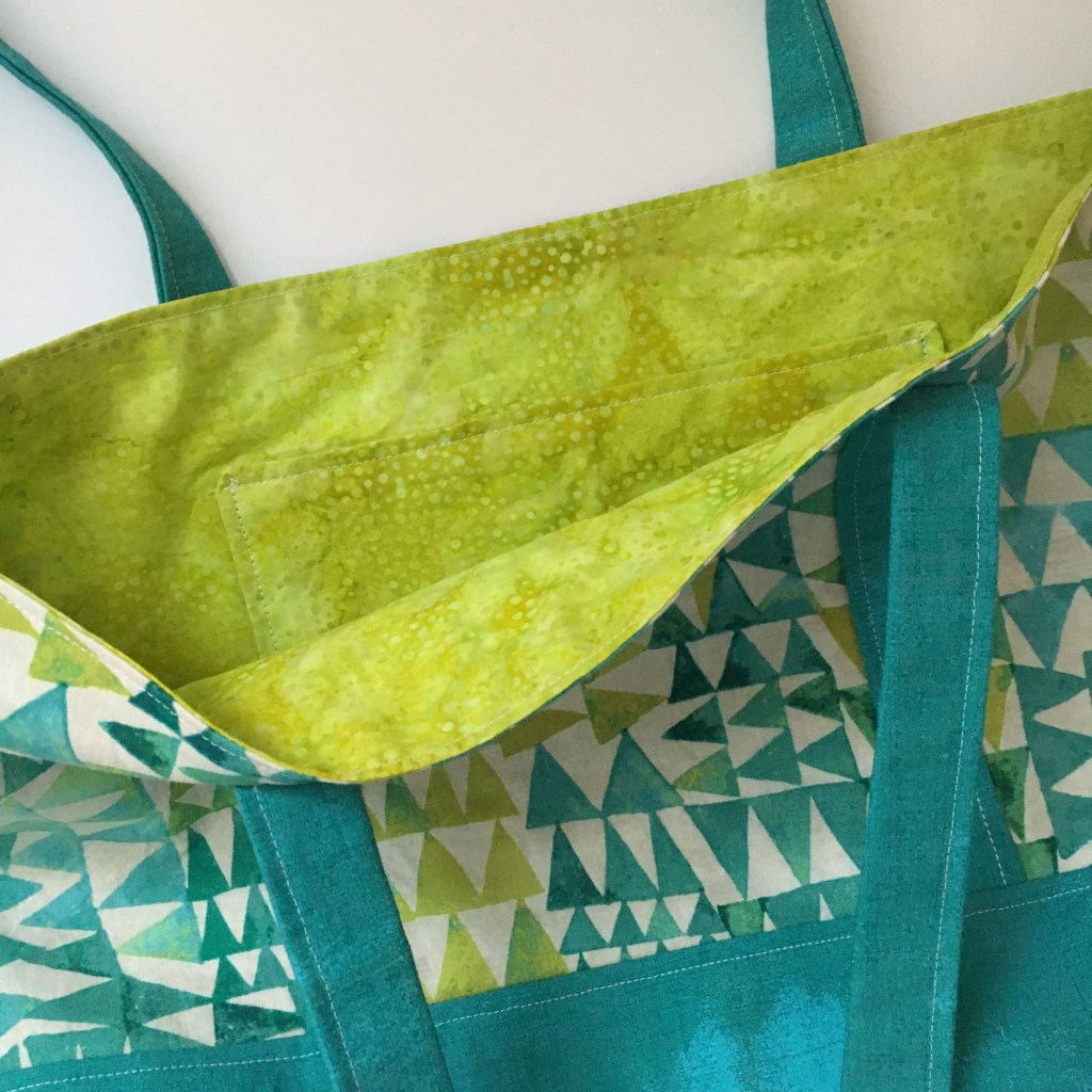 I loved making these. I gave the green/blue triangle tote to my fellow member and kept the bird one for myself. It works very well and I see myself doing more bag making.