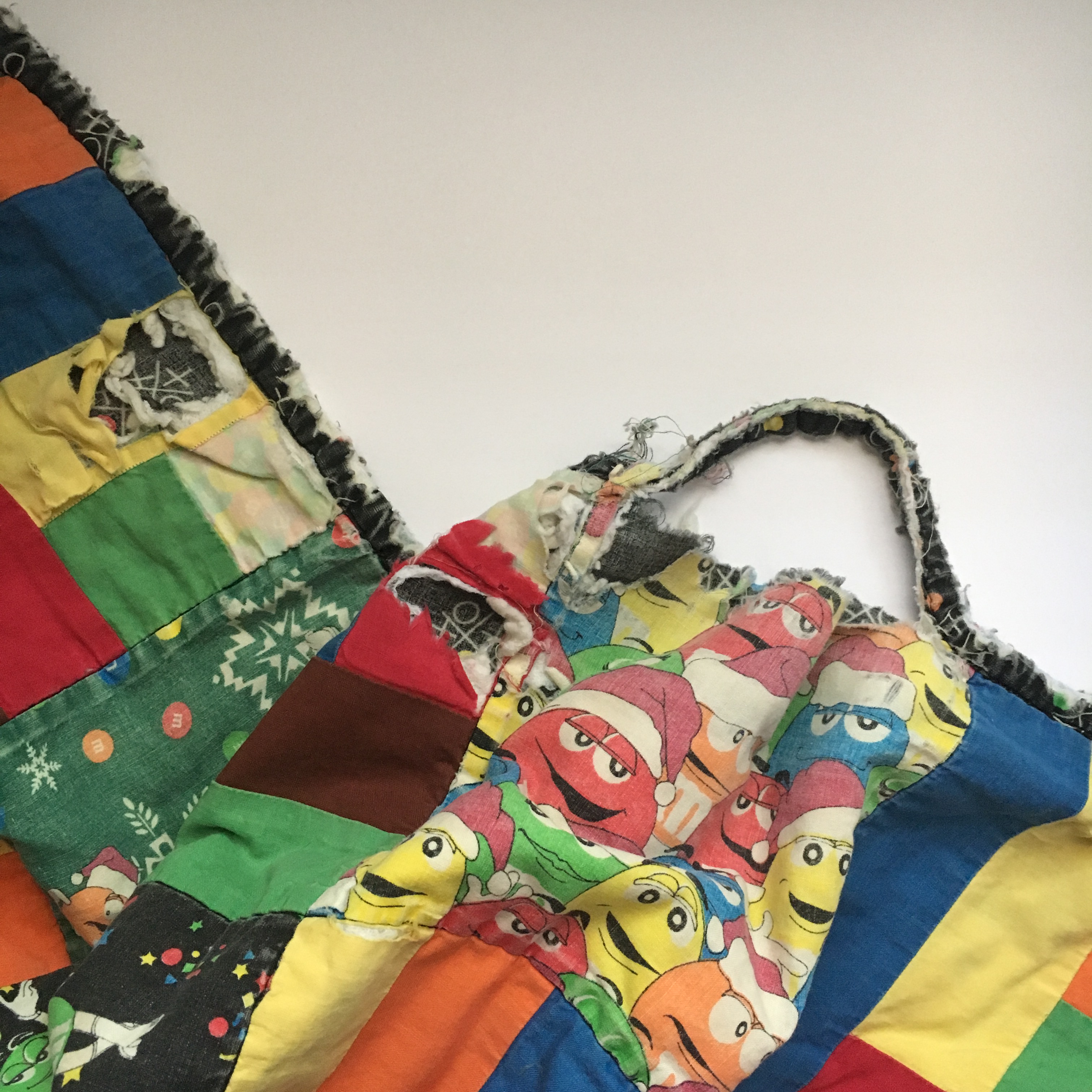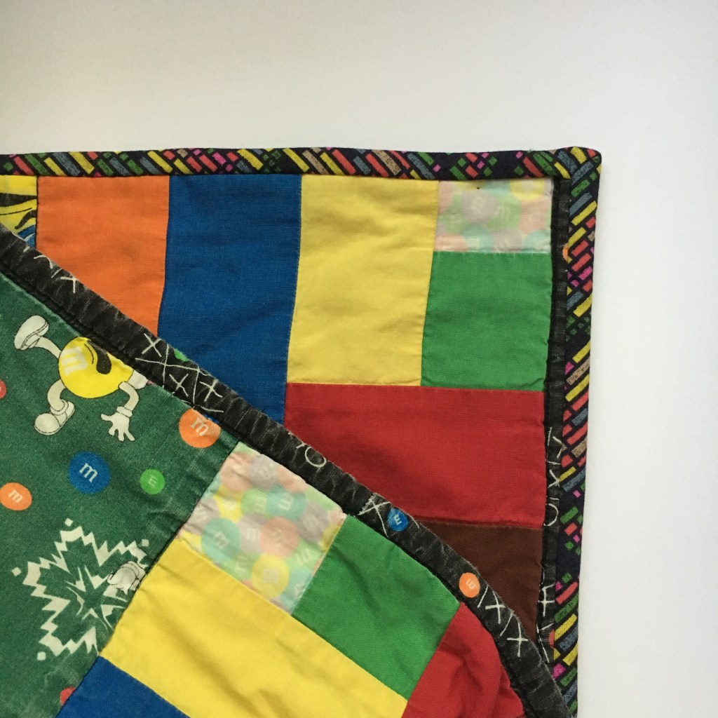 After college, I kept using it and although my mom made and gifted me at least 2 more quilts since the M&M’s quilt, I’ve used it regularly in the 18 years I’ve had it. That is, I used it until the top of the quilt started wearing out and the binding came off and I couldn’t use it without getting tangled up.