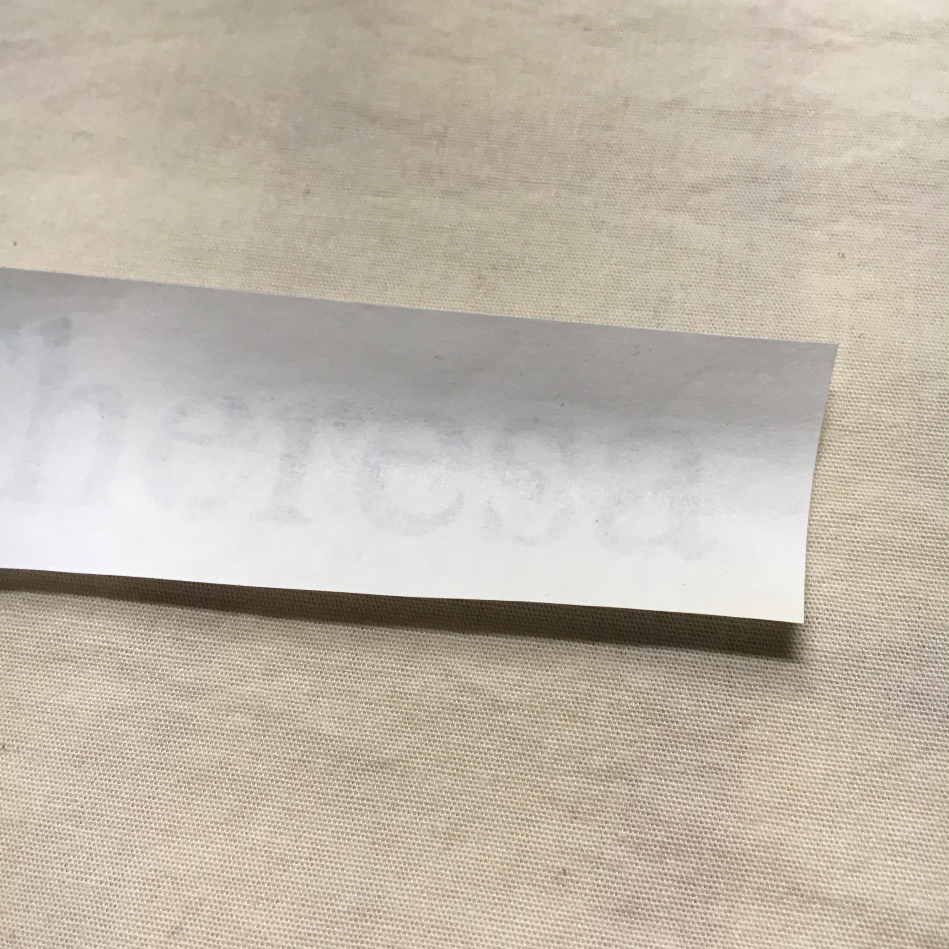 I cut out several pieces of the text and practiced ironing it to 100% cotton muslin. I put my iron on high heat and I pressed really hard. I suggest practicing. And, depending on what you plan on doing with your transfer, you may not need it to be perfect. My plan was to leave the transfer as-is, so I wanted it relatively dark. If I was embroidering it, I wouldn’t have needed it as dark, just dark enough to see where to put my needle and thread.