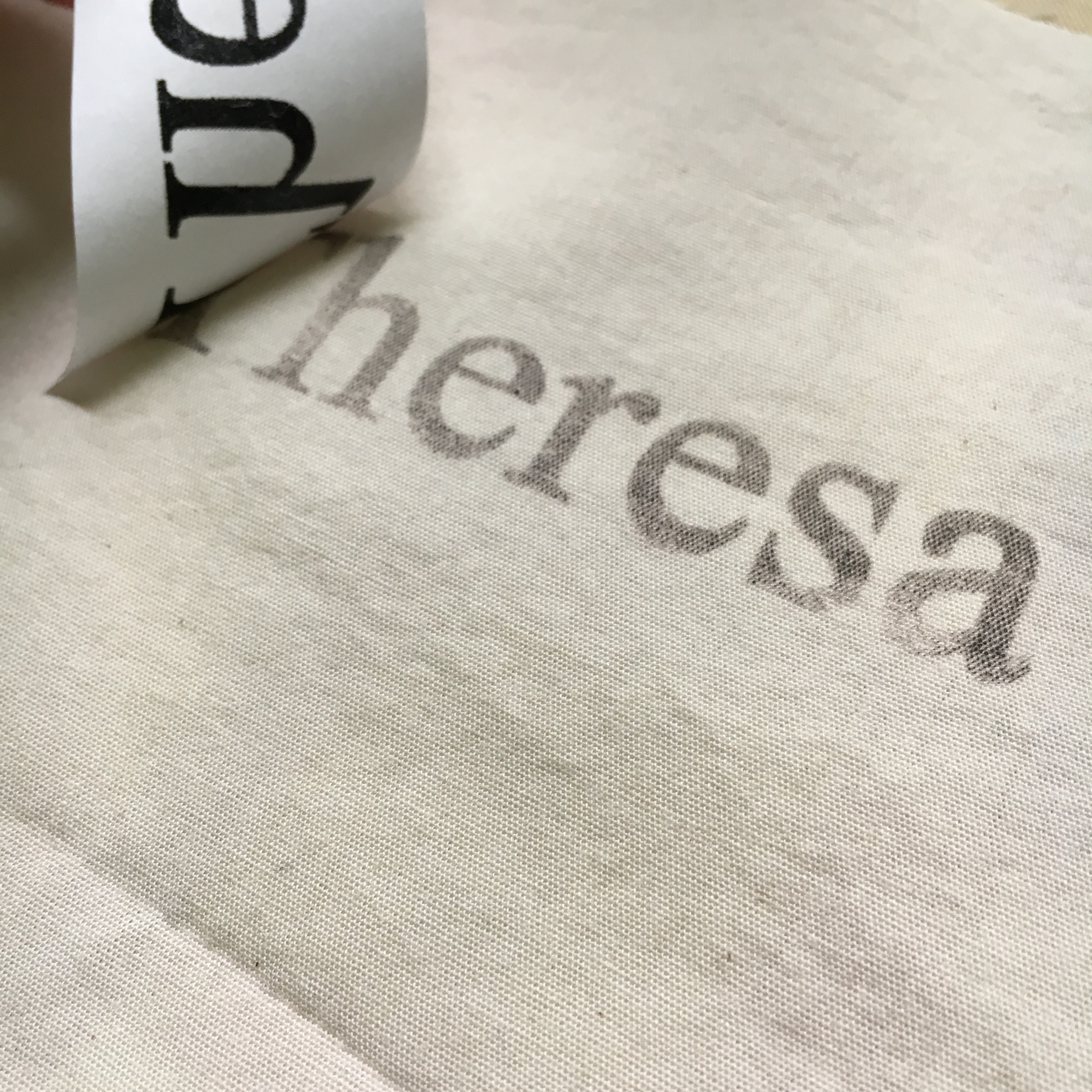 I didn’t know exactly how to put my name to fabric. My handwriting isn’t fancy and embroidery would require extra needlework I didn’t have time for. Alas, buried in the depths of my memory was a 5th grade project my mom helped me with, where we ironed a photocopied image onto a piece of fabric. While I can’t remember the specific requirements of the project, we had to create something about a book we just read (and, no, I can’t remember what book it was). I decided to embroider the image used at the beginning of each chapter onto fabric and then (with a lot of my mom’s help) make it into a pillow. I don’t even know why, but the technique for creating an iron transfer has stuck with me.