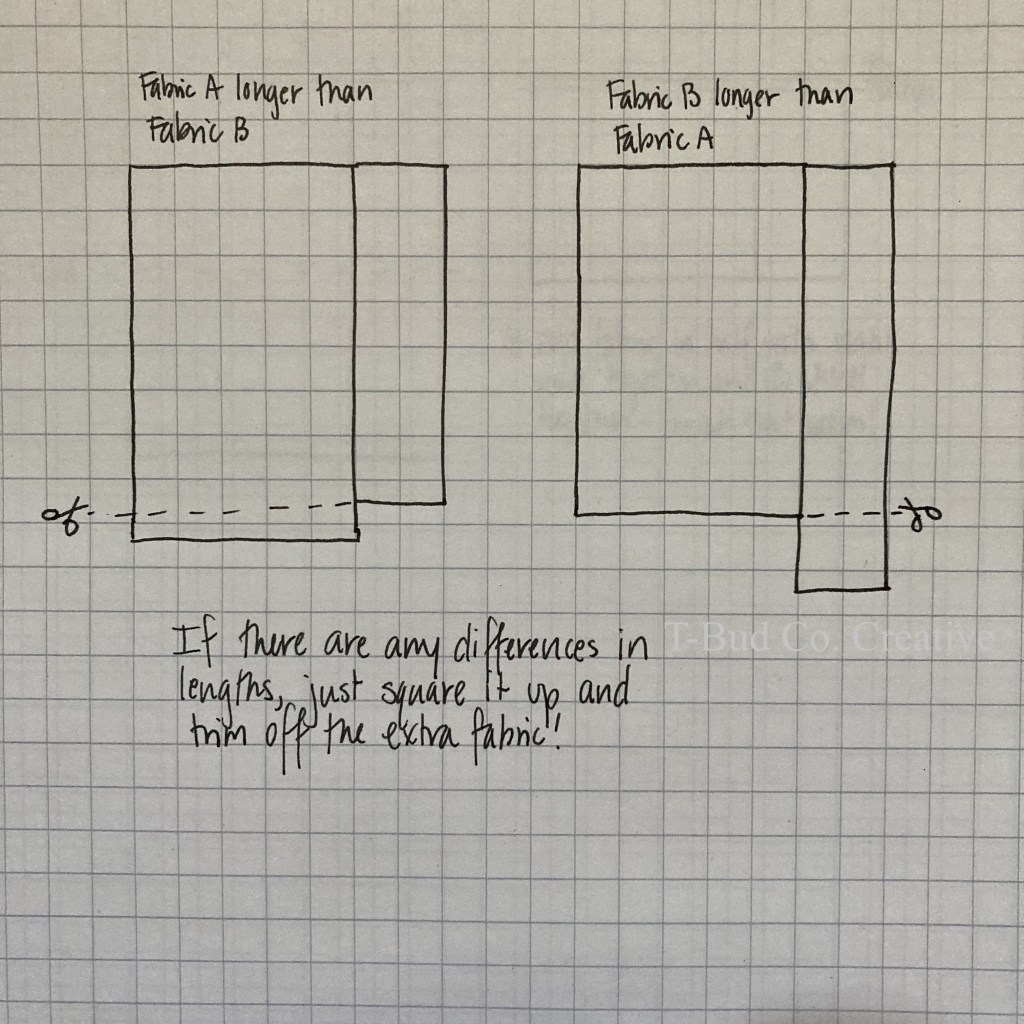Here’s where the unfussy comes in: if there are any differences in the lengths between Fabric A and B, just square it up and trim off the extra fabric after they’re stitched together. This is where you’ll get your little bit too small or little bit too big measurements. It’s okay! Trust me! Perfection is overrated anyway.