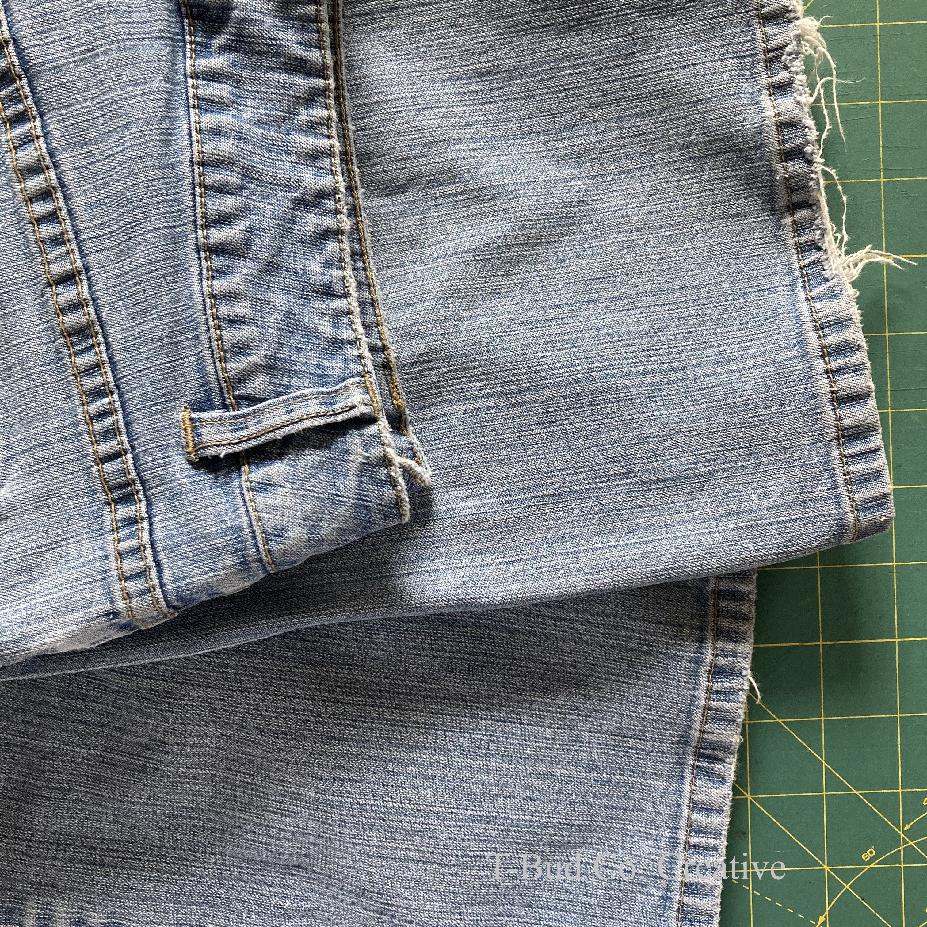 I’ve had a pair of thrifted jeans that I didn’t like for a couple of years. They were too long (and bootcut, which exacerbates the annoyance of a too-long inseam—all that fabric just hanging around my ankles!). Alas, my post-third-baby and pandemic-life body fits these jeans and not many other pants. So, I figured I can’t make these jeans any worse, so why not try to hem them and make them marginally better?