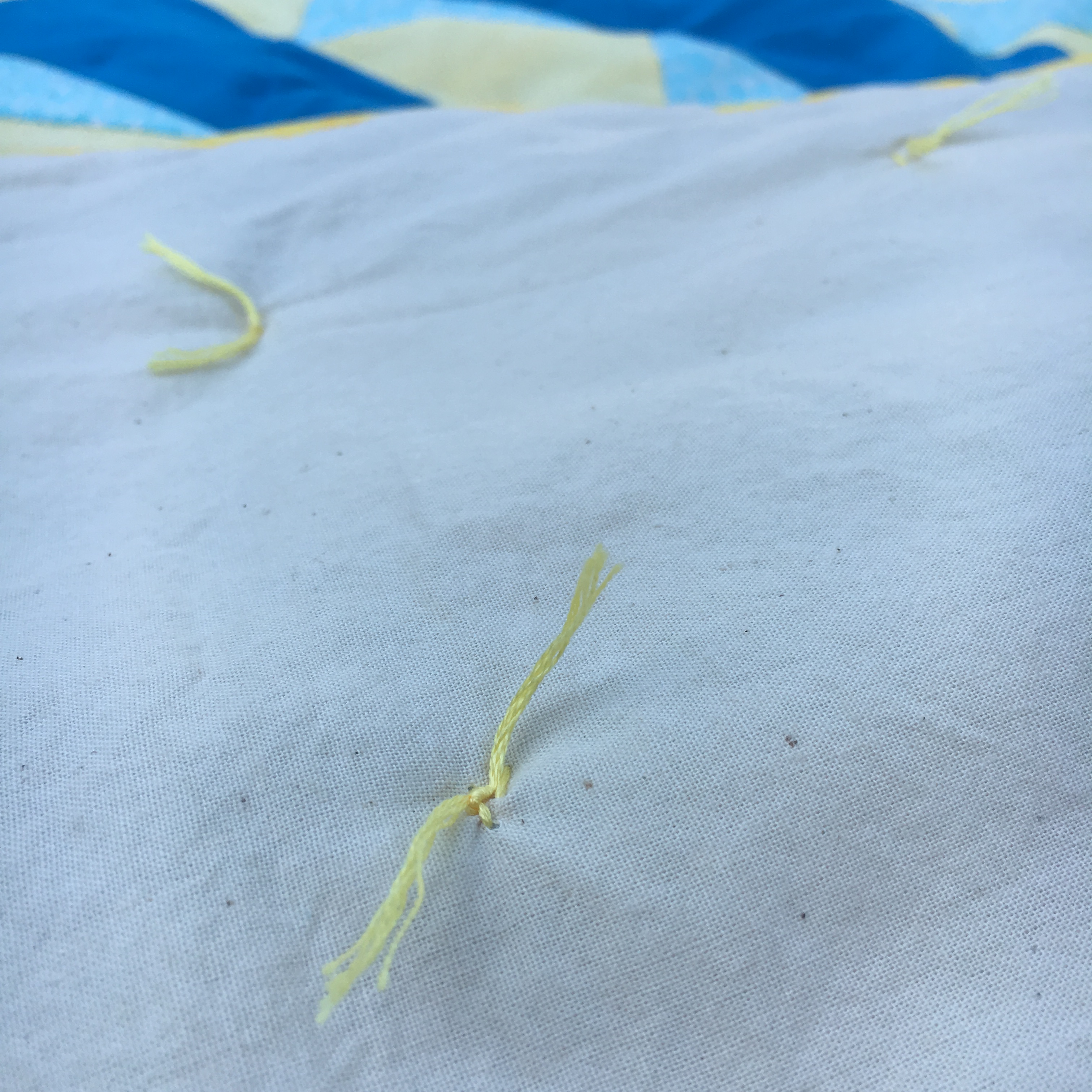 I love tying quilts. Tying a quilt is easy and quick, creates texture, and lends to the overall aesthetic of the quilt.
