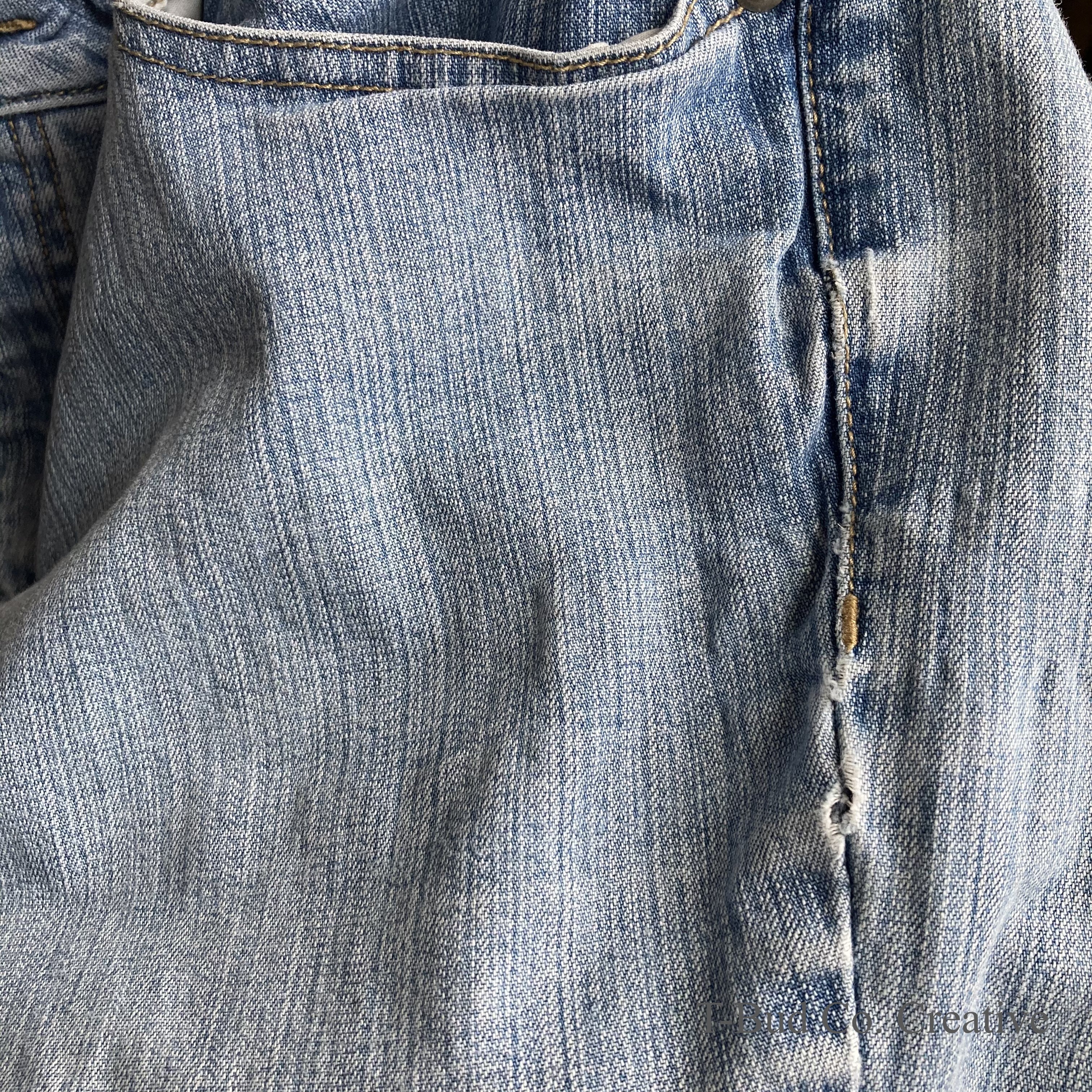 Second, I think the stitching frayed and broke because I mended these jeans while they were clean. There’s a difference in the fabric when it’s freshly washed and when it has been worn a couple of times.