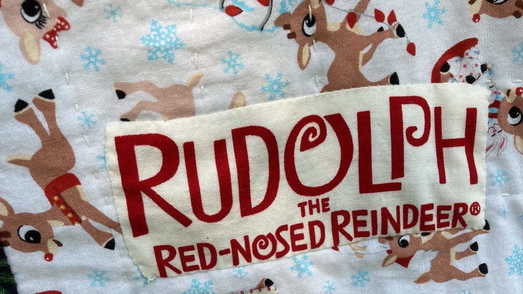 I was able to save the Rudolph logo from the panel and stitched it onto the back right above my quilt label.